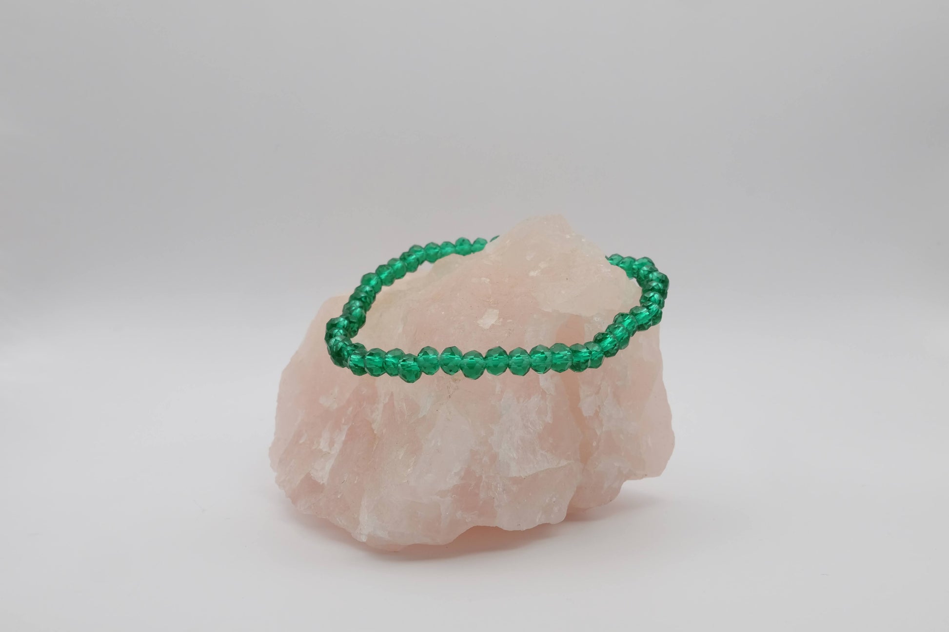 1. Celeste Bracelet: Crafted entirely from shimmering 3mm faceted crystal beads in Emerald Sparkle.